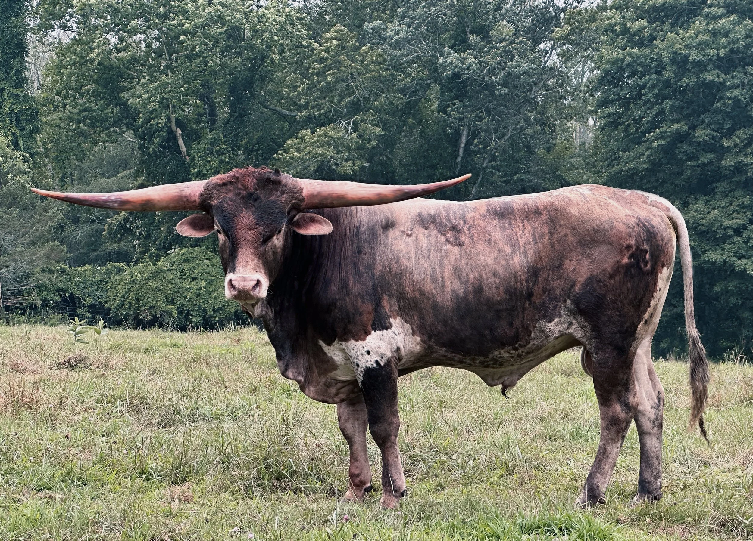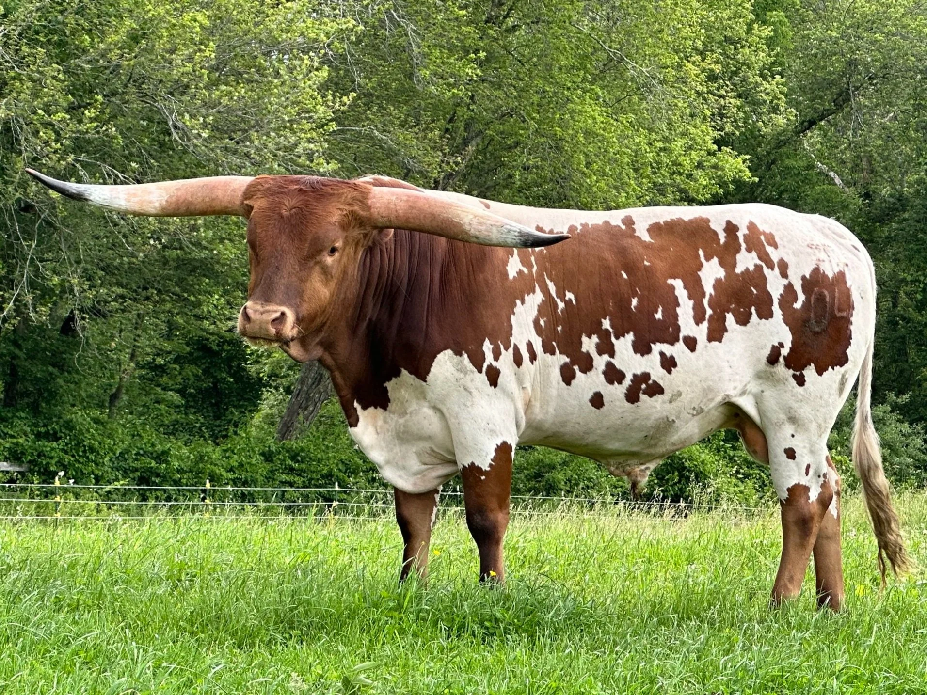 For the past four years, TTT Ferdinand has been a cornerstone of our breeding program, consistently producing well-built, conformationally correct offspring. His gentle demeanor and impressive lineage make him an exceptional choice for enhancing our herd's genetics. Ferdinand's influence can be seen in his daughters' beautiful, well-set heads and the length and correctness he adds to the hind end. All of his offspring have his lateral horn that is just starting to twist. Ferdinand's pedigree boasts the exceptional maternal line of Royal Reputation, the first 90+ cow sold for $150,000, along with Concealed Weapon and Dun Del Rio Ready influences on his dam side. His mother consistently outproduces herself, demonstrating excellent body, milking ability, and maternal conformation. Though her horns may not be large, her production quality shines through in Ferdinand's 72" horns by his third birthday. Further back in his lineage, you'll find Phenomenon and Gun Smoke, both known for producing exceptionally built bulls.